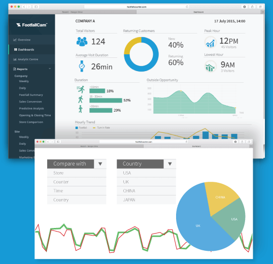 Analytic Manager™ El software reúne el conteo de personas y el conteo WI-FI y los convierte en métricas de negocios significativas valiosas para la toma de decisiones.